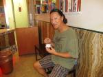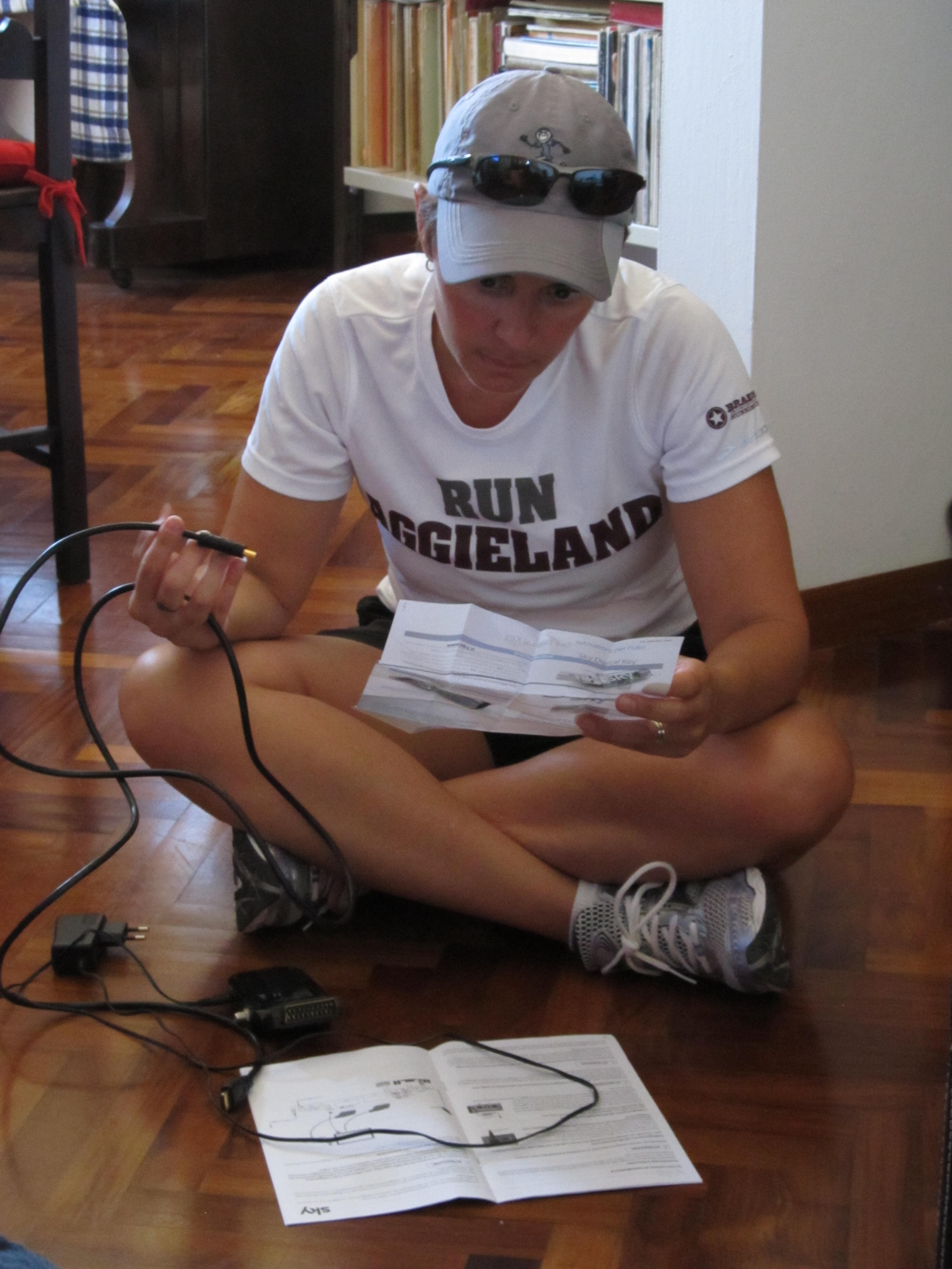 Early Tuesday morning we could swear we smelled someone already cooking…and we had… And boy, did it smell good…. Now, according to one of the proprietors, the selection we saw today (Tuesday) was nothing, because it was their first day back from ferie and they are just getting up and running. To give you some idea of what “nothing” consisted of – they were roasting whole chickens on a spit, there were all sorts of pasta dishes, including a rich and scrumptious-looking lasagna, and there were several different salads (veggies, cous cous, and more). Those were a few of the things we did not try today. The things we did try included a delicate fish filet that was divine (poached in oil I think), roast beef that was perfectly rare, oven roasted seasoned tomatoes and savory cooked (but still dark green and al dente) spinach. Admittedly, we ordered in Italian-sized portions (1 “etto” of each – 100 grams or about 4 o.z.), but this entire spread was only 12 euros. I had earlier picked up a loaf of fresh-baked bread (didn’t know they also sell that [though I suspect they get that from a bakery]) and we had the most fabulous lunch! Now, I was trying to make a good impression on these folks (who I am guessing we’re going to get to know well over time), so I suppressed the urge to photograph. However, I think by the third or fourth time we go back this week, it should be okay…