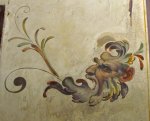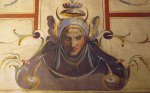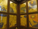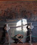 Now we’re upstairs in some of the private chambers.  The next 4 photos are from the room of Lorenzo the Magnificent and represent “grotesques” (and my favorite art in the palace – you know how I love weird old art!).  Okay, what I understood my teacher to say (I was taking notes) was that either the owner (or the artist?) was playing ball as a kid and fell (in a well?) and hit his head and had weird dreams, and these pictures represent the things he dreamed.  Since I was pretty sure I didn’t get that quite right I have done some actual research and this is what I found out (I got it about 60% right): In the 15th century, a young Roman fell into a hole and found himself in a cave with walls covered with weird frescoes (the “cave” was actually a room in an unfinished palace complex started by Nero in AD 64), inspiring him and many artists to follow to paint in this very fanciful style, baptized “grotesque.”  (I think the secondary lesson here is that while my Italian can be trusted with minor tasks, do not rely on it for matters of life-or-death!).