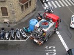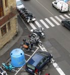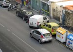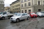 In Friday’s blog I made the following statement: “…we have learned that street signs, signals, barriers, etc. don’t mean much here (one day I’ll have to post a photo of the cars parked all over the street downstairs).”  Right after I wrote that, I thought “good idea,” and leaned out a window with a camera.   I also shot a few pictures of cars parked in and around Piazza Beccaria (the end of the main street in the neighborhood).  The thing to keep in mind as you see the photos of cars literally parked in the street, behind other cars, and in front of clearly marked “no parking” signs is that it took NO effort to take these photos – I didn’t have to wait for the shots – this is how people park ALL THE TIME.