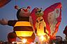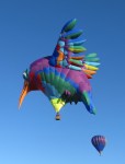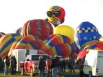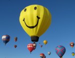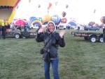 For those of you unfamiliar with the festival, hundreds of hot air balloons (many in “special shapes”) from around the world take off every morning from the festival grounds throughout the 9 day event (always the first 2 weekends of October), and then in the evenings stay tethered to the ground while lighting their burners for the “Balloon Glow.” Since the balloons take off at about 7:00 a.m., you have to leave your house very early (we got a late start today – 5:45) and then sit in traffic to park – but once you’re there, there are balloons, food and merriment galore! (I love hearing the excitement in the voices of first-timers – sometimes, like this morning, in several foreign languages.) And, in honor of the gluttonous pleasure of American festivals, yes, that is me eating a giant turkey leg at 9:30 a.m. (YUM)! Enjoy…