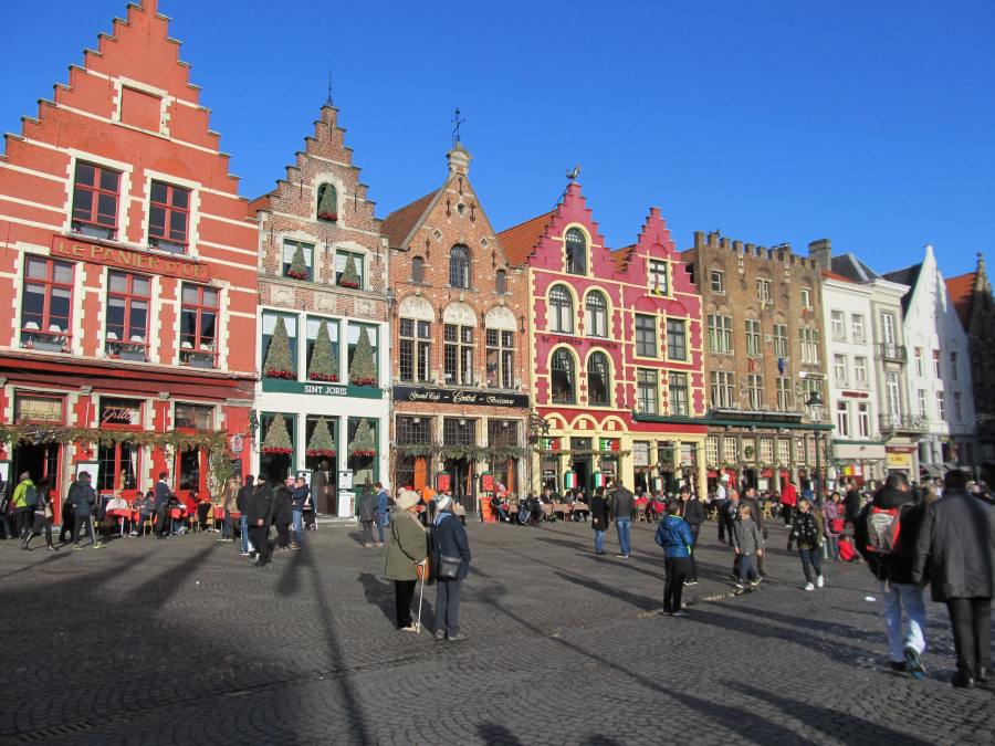 This is an image for A: A lovely local lager, the world’s best chocolate, a ginormous yummy bratwurst, 8 oz. of water; Q: What does 5 bucks buy you in Brugge, Belgium? (or “A glimpse into the grumpier side of travel”).