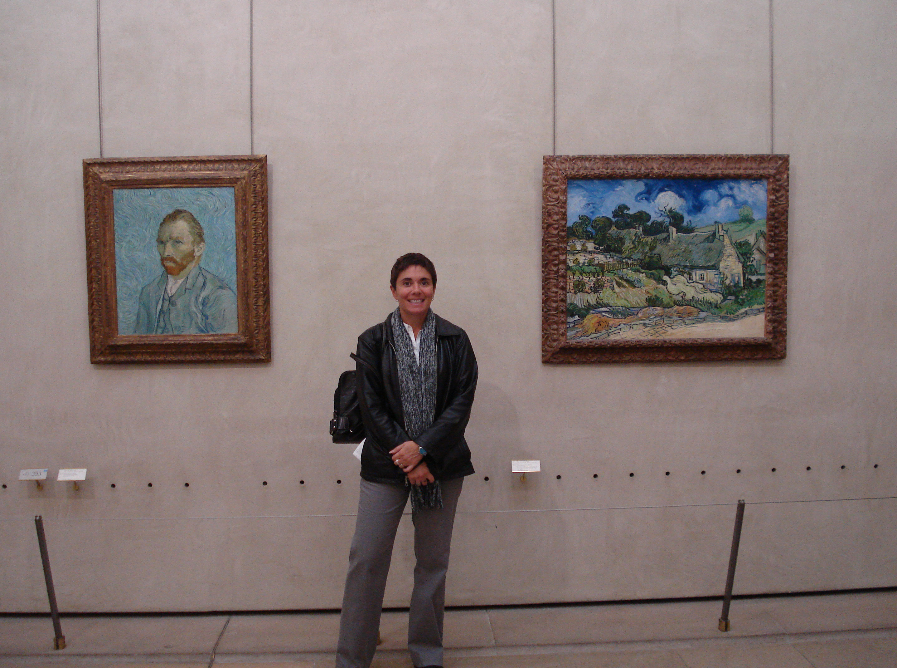As this time the “no photos” signs were very pronounced, and I didn’t want to risk getting kicked out, I can only share a picture of me and two of the Van Goghs taken here in 2008 (this was shortly after I unwittingly had my head nearly shaved at a salon in Barcelona):