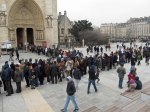 Much like the boat service in Amsterdam, the Batobus runs past most of the major tourist sites in Paris, and you can hop-on hop-off as much as you like for the duration of your pass (you can actually buy an entire year pass for only 60 euros).  In addition to a means of transportation, you get to see all of the major sites through the glass enclosure that is your boat.  The day we took this boat ride it was a low of 23 degrees and a high of 27; we were hoping for a nice warm boat like we had in Amsterdam, but this one was barely heated if at all.  As you can see, it was so cold outside that there were icicles hanging off the boat!   Since we were freezing and my toe had had enough, we didn’t get off at many stops.  We did disembark to see Notre Dame, but after seeing the line outside (surprising for a freezing February day), we just admired the outside (we’ve been inside on a previous trip).  I suppose this gray day matched our mood as it was the last day of a wonderful (and delicious) vacation…