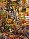 Now, I know you may be thinking it was weird of us to be eating all these non-French, non-Dutch foods on our trip… As my Lonely Planet “Amsterdam Encounter” put it (under a review of a Mexican place): “[Mexican food] is probably not why you came to Amsterdam.”  However, for us it was just the culinary (and thus cultural) relief we needed.  (Amsterdam also gave us our first peanut butter and jelly sandwiches and first bagel in the past 6 months.)  We also came across an American grocery store – one with real American groceries (not the fake Filipino graham crackers or Swedish tortillas of Vivi Market).  Now, before you get too excited for us (especially after you see the picture of the front window, below), know that the prices were insanely high.  I have to admit, we did each treat ourselves to one thing, but pretty much just “ooooo’d”  and “ahhhhhh’d” (just as an example, one thing we did not splurge on was a normal sized Reese’s candy bar – 2.10 euros, or about $2.80).   We chatted with the proprietor and he said he has many customers from Florence, including a professor who comes 4 times a year and fills up an empty suitcase!   Interesting.