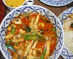 We had pretty much similar experiences throughout Paris.  Even at the upscale Lafayette Gourmet market, in addition to French foie gras (again, more in a later post), there was an entire stall for Chinese delicacies.  The regular grocery stores had things we thought didn’t exist in Europe – cheddar cheese and Oreos and Asian sauces and more.  And, while I have to say the hot sauce was nowhere near hot enough for my taste, the chips we got at the Mexican restaurant “Fajitas” were those fabulous thin-crispy ones I miss so much.   There was at least as much variety in Amsterdam (as well as the ability to eat before 8 p.m.).  And, while we enjoyed the local specialties there as well (stay tuned), we had what I could consider the best Thai green curry I’ve ever had.  Now, no offense to my favorite Thai place back in Albuquerque, but instead of 80% bamboo shoots (as I’m used to), my curry was filled with every vegetable on the planet.  Thinking the curry was going to be tamed-down for European taste buds (as was the Paris hot sauce), I made the mistake of asking for it “hot” and got what I asked for (anyone whose ever eaten authentic Thai understands what Thai hot means).  I loved every last mouth-searing second of it!!!   (Sadly enough, the hot sauce at the Amsterdam Mexican place we tried, while billed as “habenero,” was only about medium-Pace level hot.)